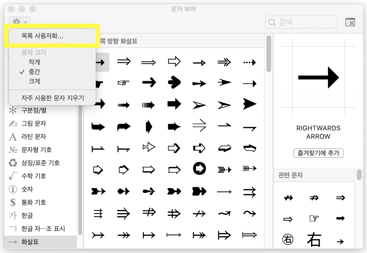 이렇게 사용하여 다양한 기호를 확인할 수도 있고
