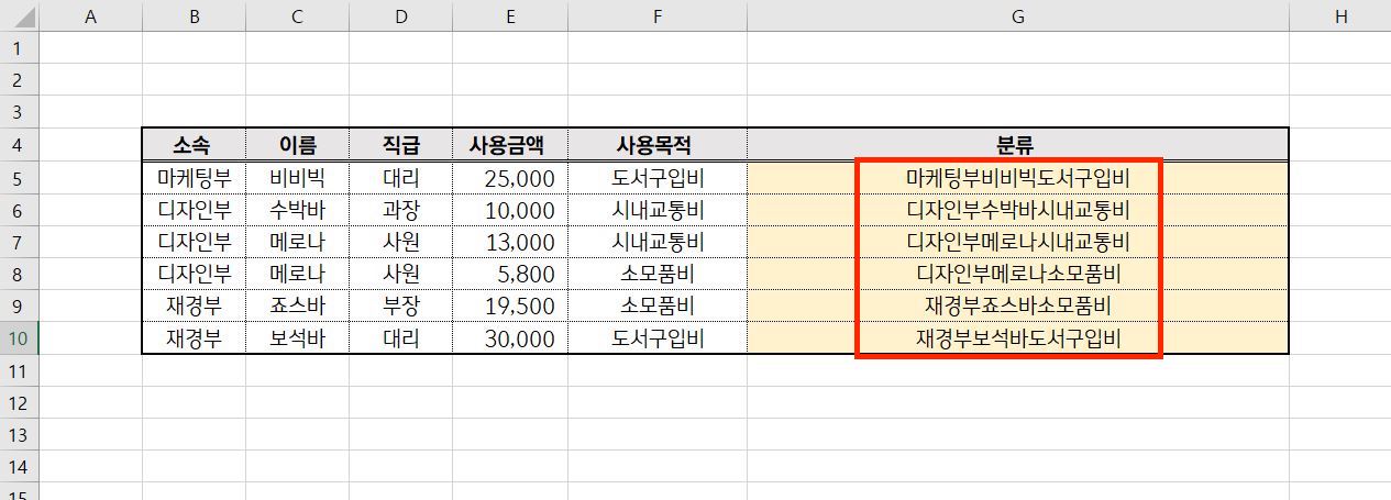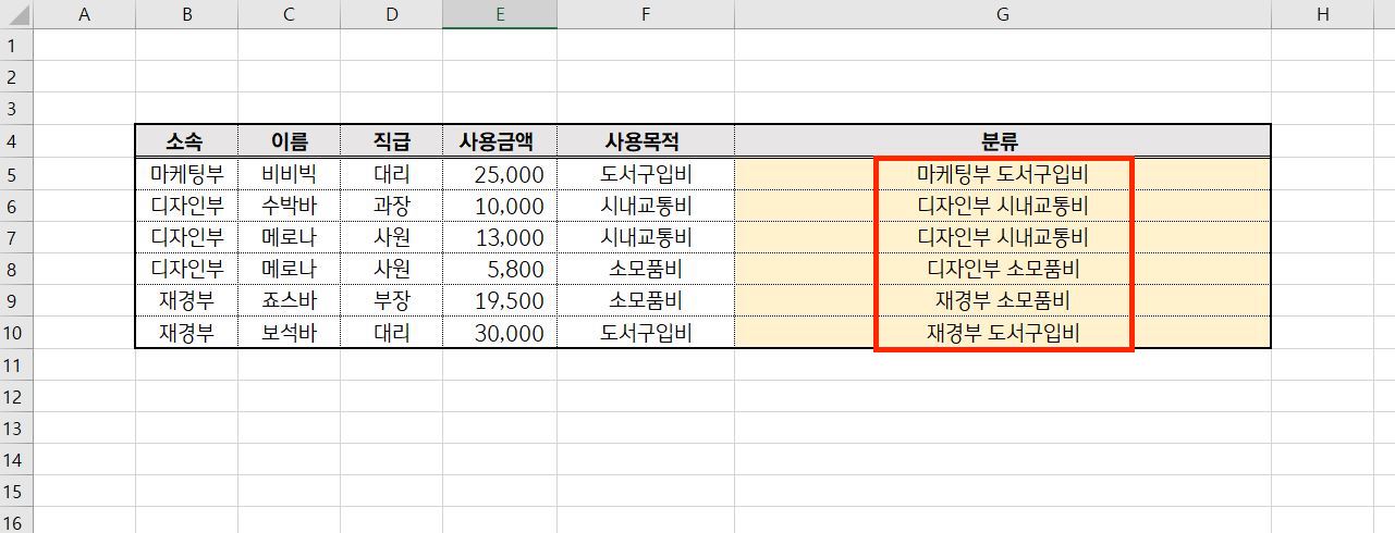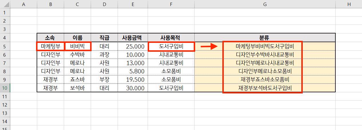 엑셀 꿀팁 중 두 셀의 텍스트를 합치는 방법이 있습니다