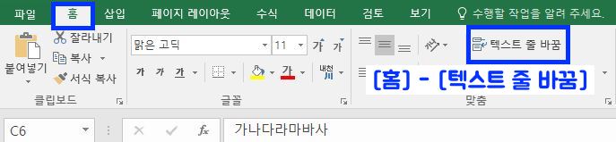 엑셀 줄 바꾸기 기능 2 / 텍스트 줄 바꿈